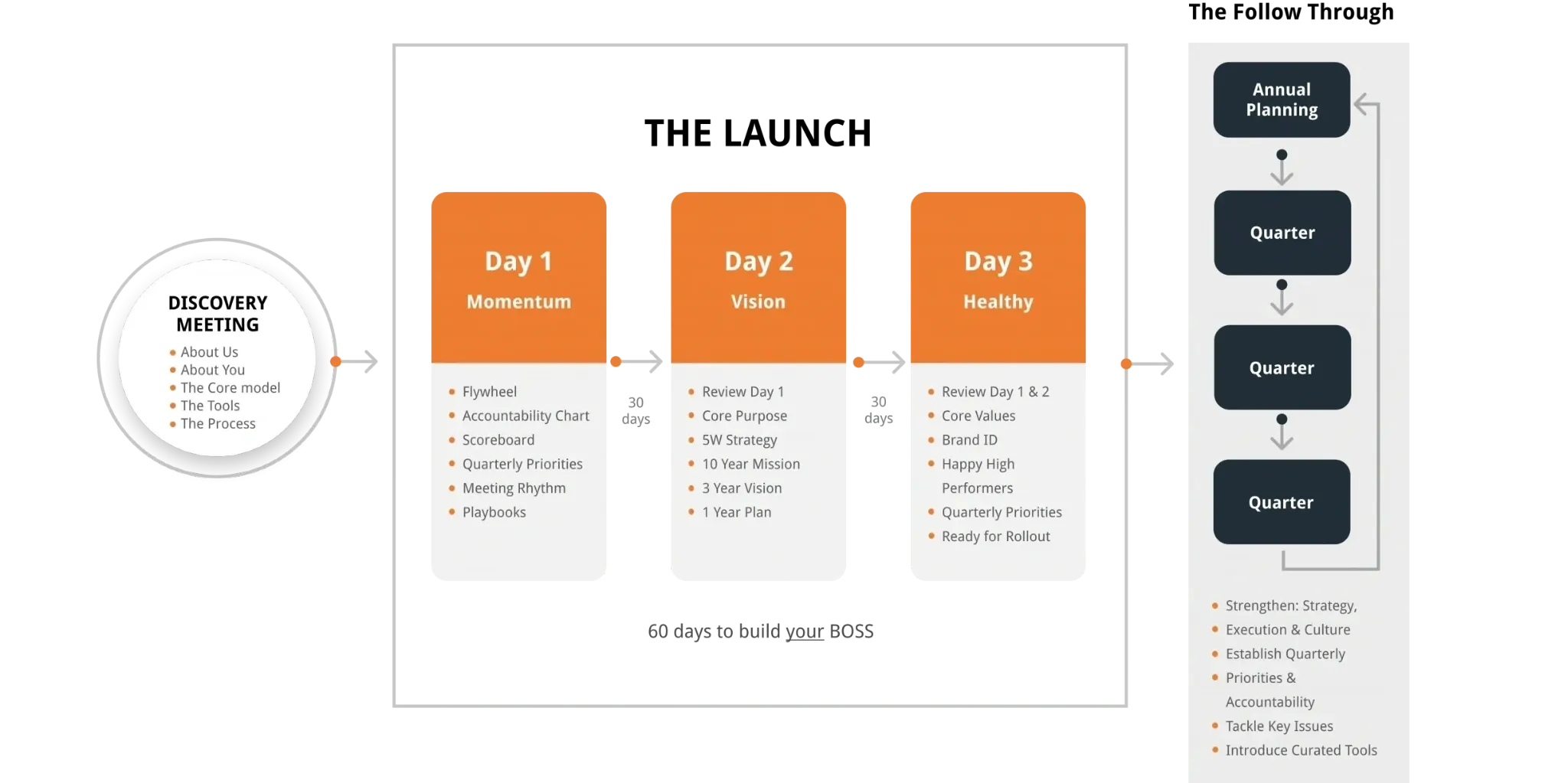 The Discovery Meeting provides a clear picture of the BOS360 to help you decide if it's right for you. There's no better way to find out if the BOS360 is right for your business - and you don't have to.