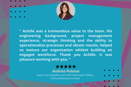 " Achille was a tremendous value to the team. His engineering background, project management experience, strategic thinking and the ability to operationalize processes and obtain results, helped us mature our organization whilest building an engaged workforce. Thank you Achille. It was pleasure working with you. "